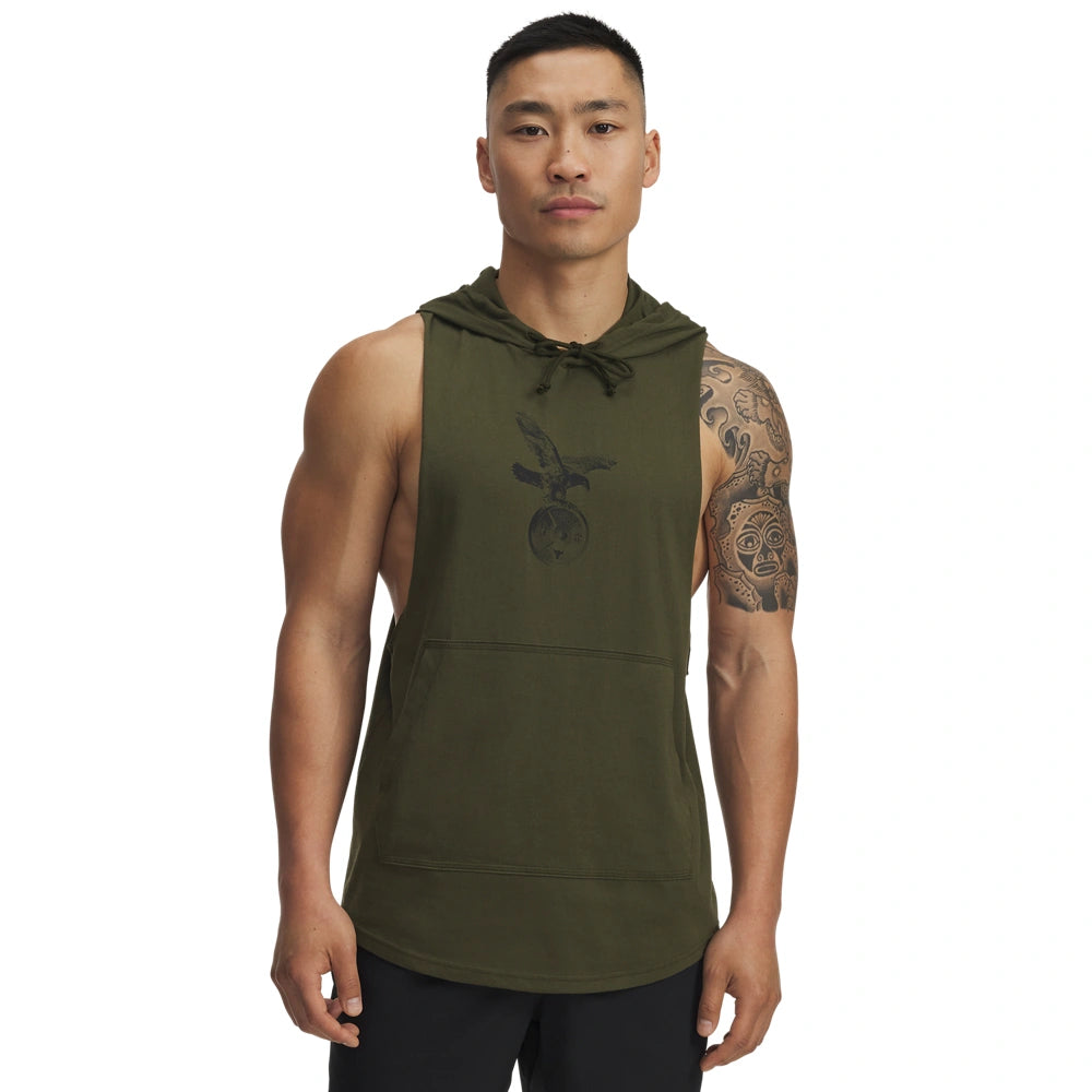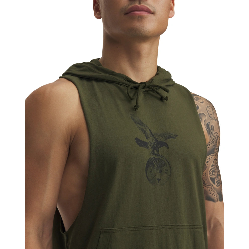 Project Rock training gear was built to help you find boundaries, then push right through them. This sleeveless hoodie was personally approved by Dwayne Johnson, the hardest worker in the room. ANY room.